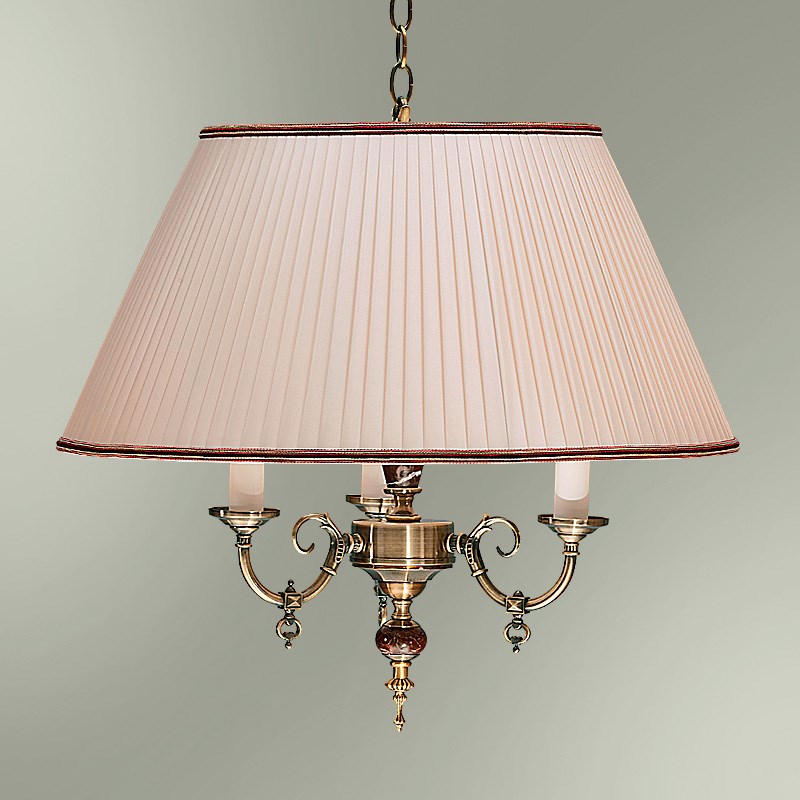 Светильник данного типа обычно используют в небольших комнатах, спальнях, кабинетах площадью до 15 кв.м. Светильник подвешивается на цепи и крепится на крюк в потолке. В стандартной комплектиции общая высота светильника 75 см, по желанию заказчика длина цепи может быть увеличена. Арматура светильника изготовлена из цинкового сплава с декоративным покрытием под античную бронзу, центральные элементы изготовлены из натурального камня. Абажур изготовлен из текстильной ленты.