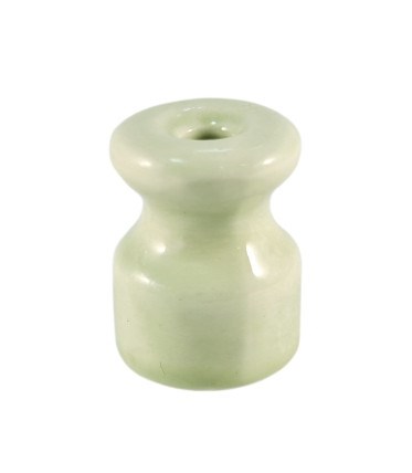 Изолятор (ролик) из фарфора зеленого цвета предназначен для фиксации витого провода при монтаже электропроводки открытым способом. Крепление к основанию (стене, потолку) осуществляется с помощью шурупов (саморезов) с потайными головками, для которых имеется углубление.