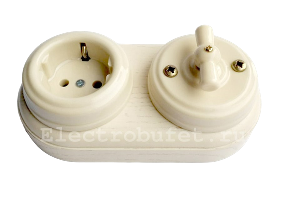 Комплект Слоновая кость ретро выключатель+розетка+рамка Мезонин