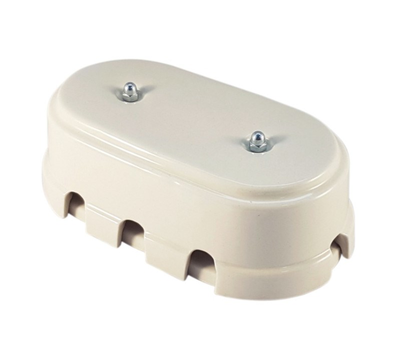 Основание распределительной коробки также изготовлено из фарфора, что создает огнеупорную защиту между спаянными проводами и несущей поверхностью (стеной, потолком).
