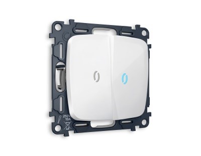 MO104020 Комплект механизма 2-кл выключателя с подсветкой 10000K OMEGA Белый глянец QUANT (OP1040, VM115, G17B), AMBRELLA VOLT, MO104020