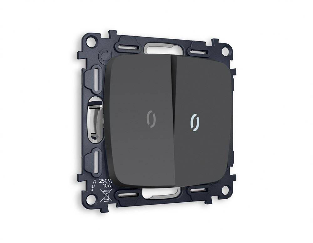 MO904035 Комплект механизма 2-кл проходного выключателя с подсветкой 5600K OMEGA Графит мягкое касание QUANT (OP9040, VM120, G25W), AMBRELLA VOLT, MO904035