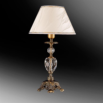 Настольная лампа с хрустальными элементами найдет себе место как в гостинной так и в спальне,смягчая контуры обстановки и создавая замечательную игру светотени . Данная модель будет украшением Вашей спальни. Основание лампы изготовлено из металла с декоративным покрытием под античную бронзу, абажур изготовлен из светотехнического пластика, выключатель расположен на шнуре с вилкой.