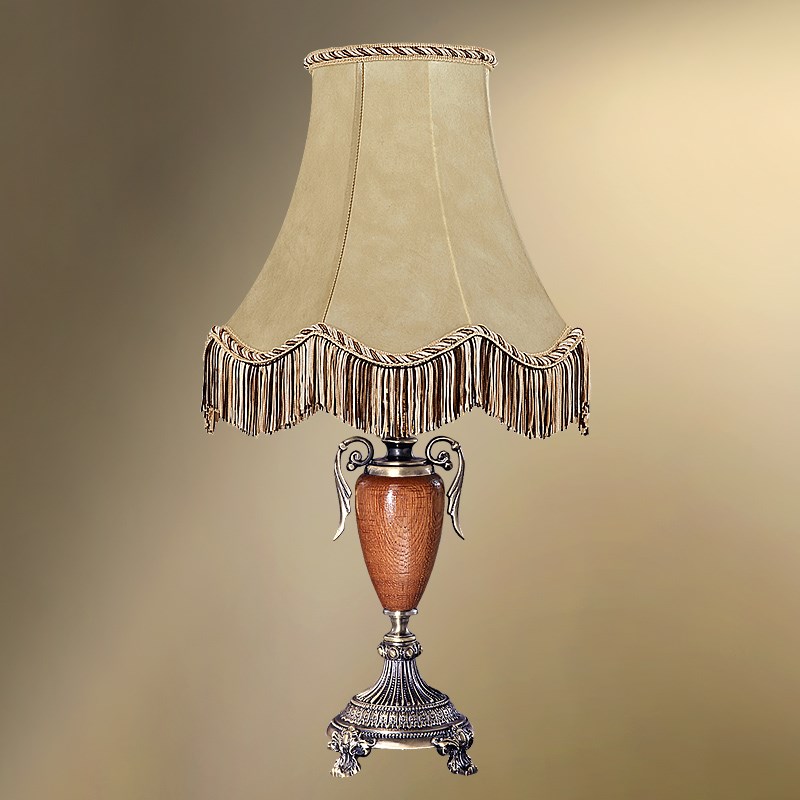 Настольная лампа с элементами из массива бука найдет себе место как в гостинной так и в кабинете на Вашем рабочем столе. Смягчая контуры обстановки и создавая замечательную игру светотени данная модель станет украшением Вашей спальни. Основание лампы изготовлено из металла с декоративным покрытием под античную бронзу, выключатель расположен на шнуре с вилкой.
