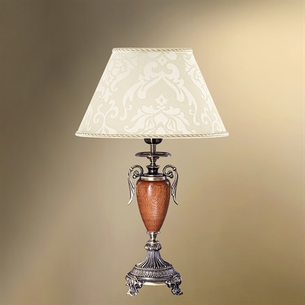 Настольная лампа с элементами из массива бука найдет себе место как в гостинной так и в кабинете на Вашем рабочем столе.Смягчая контуры обстановки и создавая замечательную игру светотени данная модель станет украшением Вашей спальни. Основание лампы изготовлено из металла с декоративным покрытием под античную бронзу.