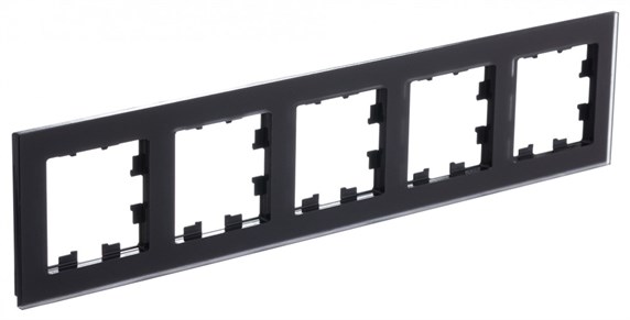 Рамка Systeme Electric (ранее Schneider Electric) серии AtlasDesign Nature (цвет чёрное матовое стекло) 5-постовая.