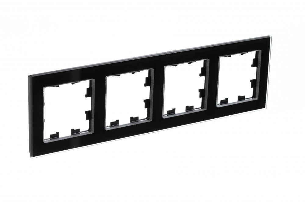 Рамка Systeme Electric (ранее Schneider Electric) серии AtlasDesign Nature (цвет стекло чёрный) 4-постовая.