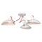 Потолочный дизайнерский светильник из трех источников света с рассеивателями- отражателями. Рассеивателя -отражатели металлические, одноцветные, белые. Токоведущие провода красного цвета. Компоновка светильника с тремя лампами при правильном расположении на потолке позволит сделать акцентное освещение там где оно более нужно и затенить там где свет нужен в минимальном количестве.