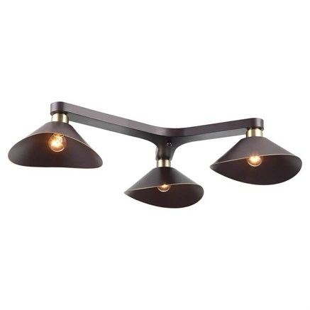 Потолочная люстра черного цвета для низких потолков полностью состоит из антивандальных элементов. Арматура и плафоны выполнены из качественного металла который не подвержен коррозии и окрашен в черный цвет. Как все брендовые изделия содержит старшую и младшую модель. В данном случае старшая с пятью плафонами, младшая с тремя.