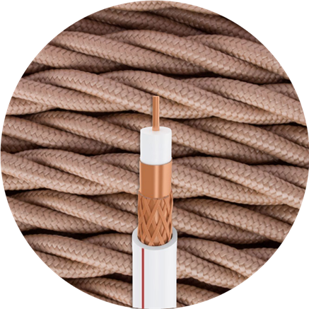 Ретро кабель коаксиальный, Капучино, Bironi B1-426-716-20. Состоит из двух отдельных коаксиальных кабелей в декоративной оплетке, сплетенных между собой.