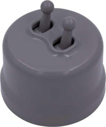Ретро выключатель 2-х тумблерный, пластиковый, Титан, Bironi B1-232-26. Ретро выключатель, 2-х клавишный, пластиковый, титан, Bironi B1-222-26. Изготовлен из высокопрочного пластика, устойчивого к истиранию. Оснащен клавишным переключателем вместо поворотного механизма. Применяется с открытой проводкой, хорошо сочетается с текстильным кабелем. При необходимости может использоваться и при монтаже скрытой электропроводки.