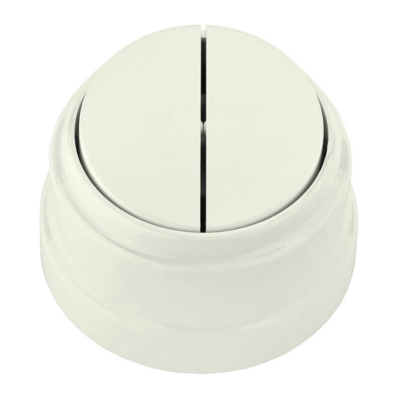 Выключатель ретро пластиковый 2х-клавишный, Бежевый из ABS-пластика, 6А/250В. Для установки на ровную поверхность стены и специальные пластиковые подложки подложки.