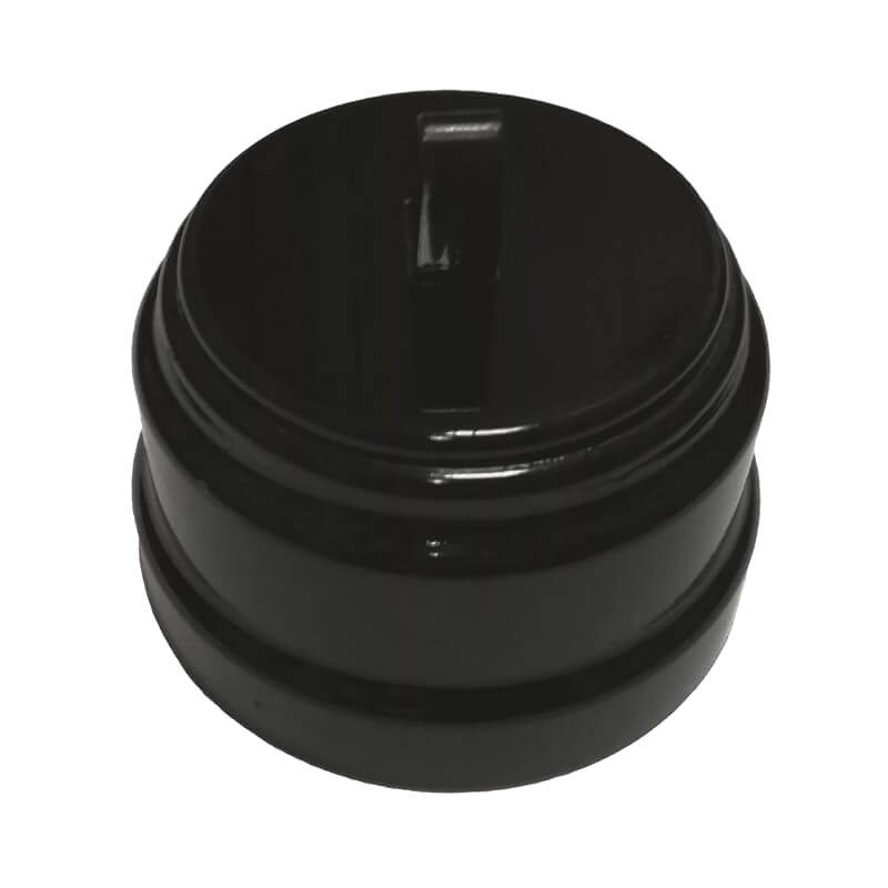 Выключатель ретро тумблерный, пластиковый, черный, из ABS-пластика, 10А/220В. Для установки на ровную поверхность стены и специальные пластиковые подложки подложки.