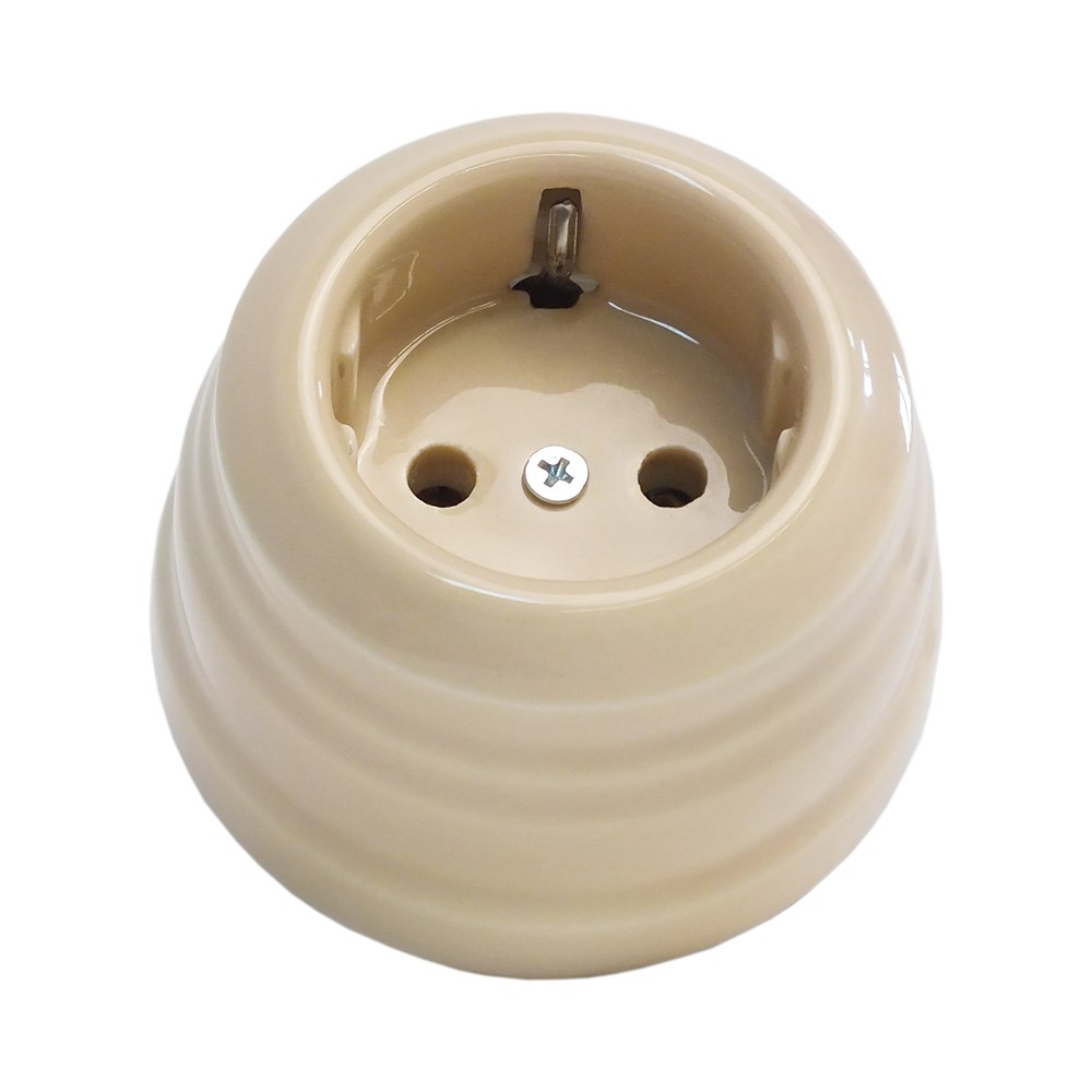Розетка керамическая в ретро стиле, 16А. Внутренний механизм розетки выполнен из керамики, может устанавливаться как на подложку так и без нее. Цвет: бежевый
