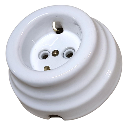 Розетка керамическая в ретро стиле, с заземляющим контактом, белая. Серия Астория.