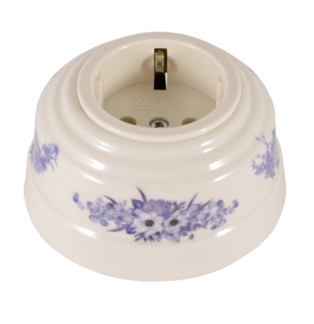 Розетка ретро керамическая с заземлением fiori viola синие цветы, Leanza Fiori Viola РВС