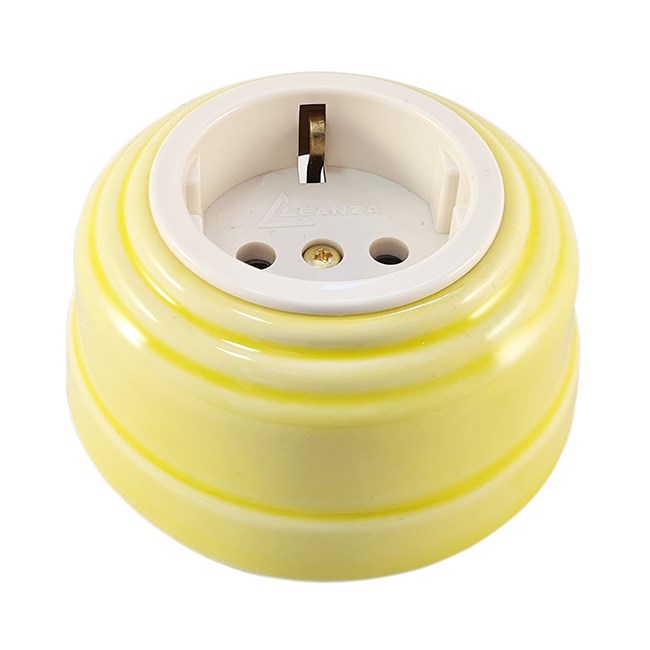 Изготавливаются под заказ 5-10 дней. Розетка электрическая ретро с фарфоровым (керамическим) корпусом Leanza серия Весна цвет желтый. Розетка адаптирована под вход электрических вилок евростандарта. Дно розетки выполнено из термостойкого ABS пластика, который создает огнеупорную защиту между механизмом розетки и несущей поверхностью (стеной).