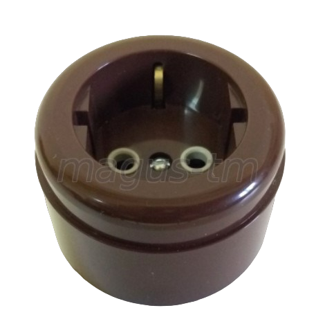 Коричневая пластиковая розетка ретро с заземляющим контактом, из АБС-пластика, 16А, для установки на ровной поверхности стены или специальной подложке Intrior Elc.