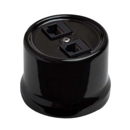 Розетка пластиковая ретро телефон/компьютер Черная, Bironi B1-301-23