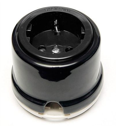 Розетка с заземлением и шторками Черная Salvador ОР12BL для наружного монтажа