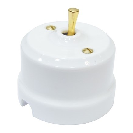 Тумблерный ретро выключатель Белый/Золото Lindas 34410-G