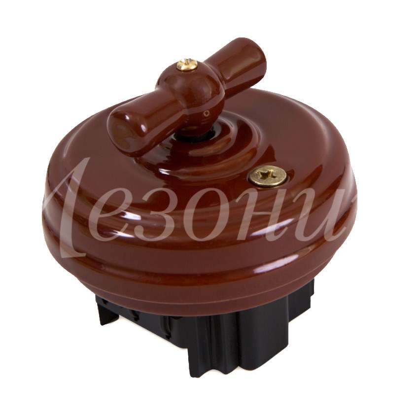 Керамический выключатель поворотный 1-2 клавишный в стиле ретро для наружной и внутренней* установки. Без подъемной рамки**.
