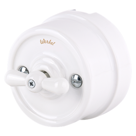 Поворотный переключатель в ретро стиле с высокопрочным фарфоровым корпусом Werkel WL18-01-03 белый. Используется как выключатель света (включил/выключил), а так же как проходной- в паре с другим проходным выключателем позволяет управлять освещением из дух разных мест. Комплектуется диэлектрической пластиной изготовленной из термостойкого ABS пластика, который создает огнеупорную защиту между механизмом выключателя и несущей поверхностью (стеной).