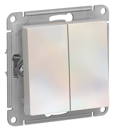 Механизм выключателя 2-клавишного Systeme Electric (ранее Schneider Electric) серии AtlasDesign в цвете жемчуг подходит для сетей 250 В, на ток 10 А.